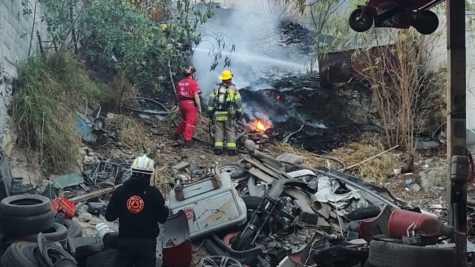 Controlan incendio en tarimera de Apodaca